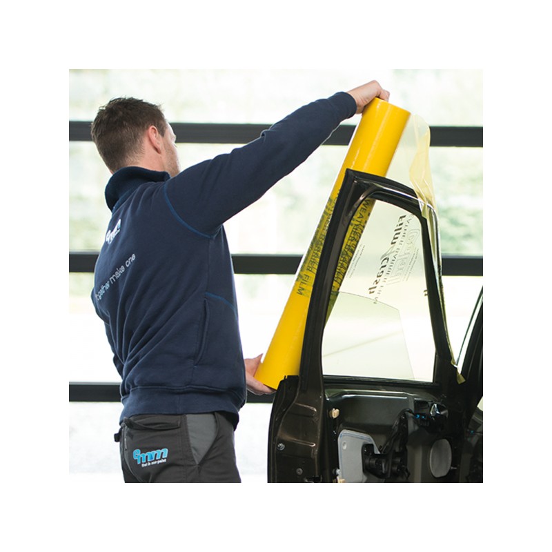Este plástico inteligente protege el vehículo de las inclemencias meteorológicas tras la retirada de puertas o ventanillas rotas. Plástico autoadhesivo flexible y resistente que protege las aberturas de las inclemencias meteorológicas. Permite precintar fácilmente un vehículo tras una colisión, desmontaje o robo. Resistente a los rayos UV durante, al menos, 6 meses para evitar cualquier posible pérdida de color del interior del vehículo. Al retirarse, todo el adhesivo se desprende con el plástico sin que queden restos en la superficie. Puede colocarse sobre pintura recién seca. Dimensión: 75 cm x 60 m. Por rollo.