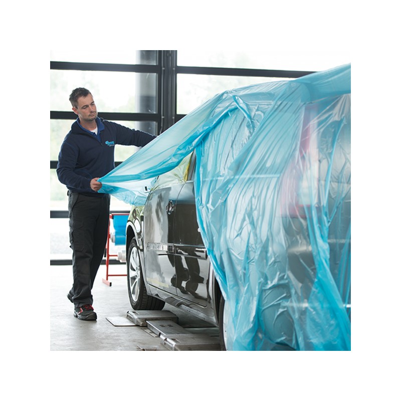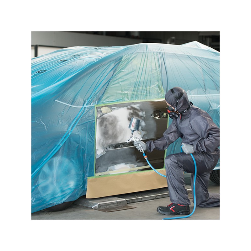 Plástico de enmascarar translúcido azul con adhesión de la pintura, capacidad de transpiración y absorción de la humedad. Listo para su uso sobre objetos húmedos, ya que impide la aparición de “manchas fantasma”.
