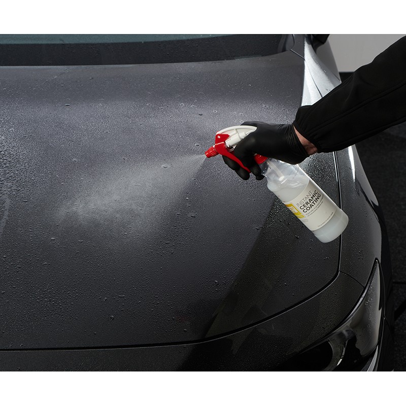 Instant Ceramic Coating es un acondicionador de exterior que se aplica mediante pulverizador. Realza el color de la pintura original y aumenta su brillo.Tiene una excelente resistencia a los detergentes y gran durabilidad. Crea una superficie resbaladiza y de fácil cuidado.