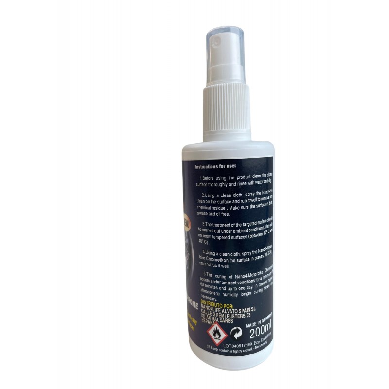 • Sellado y fácil eliminación de manchas y todo tipo de depósitos de suciedad en las superficies cromadas de las motos