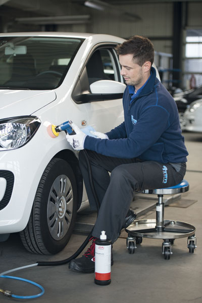 Componente abrasivo que elimina en un instante rayones agresivos, impactos y desperfectos de la superficie. Solución rápida para rayones agresivos y desperfectos en la pintura.