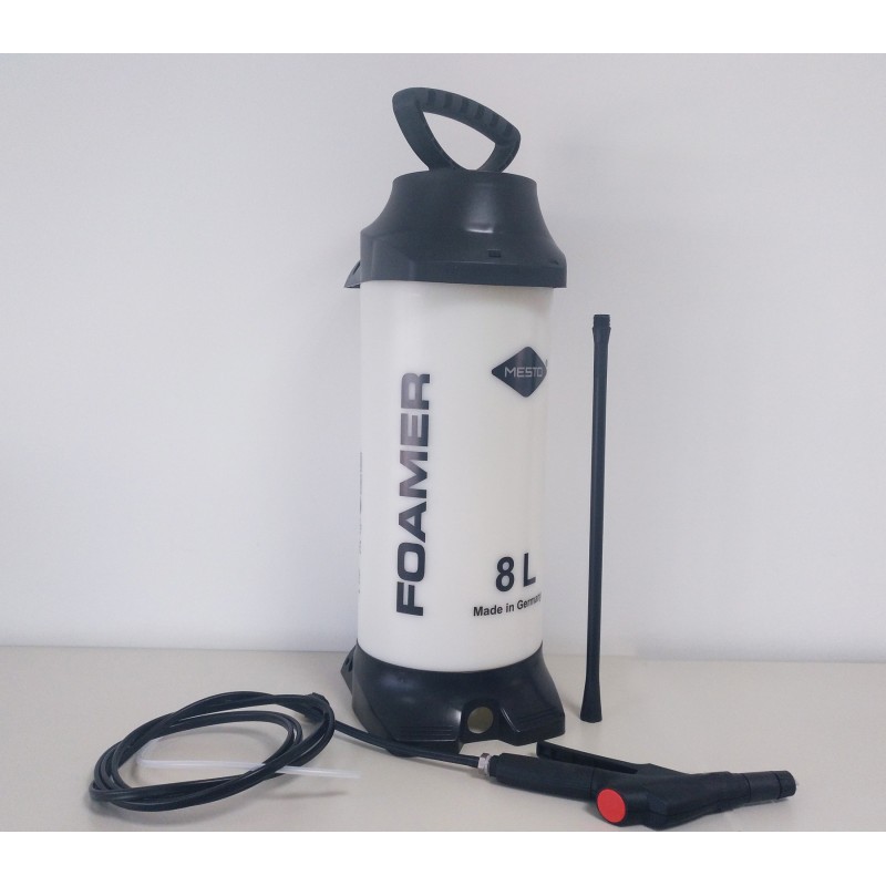 Con su gran capacidad de 8L de capacidad asegura poder utilizarse en largos periodos de tiempo. Tanque plástico con una gran reserva de presión, incorpora manómetro y válvula de seguridad. La base ancha proporciona además la estabilidad incluso en superficies irregulares.